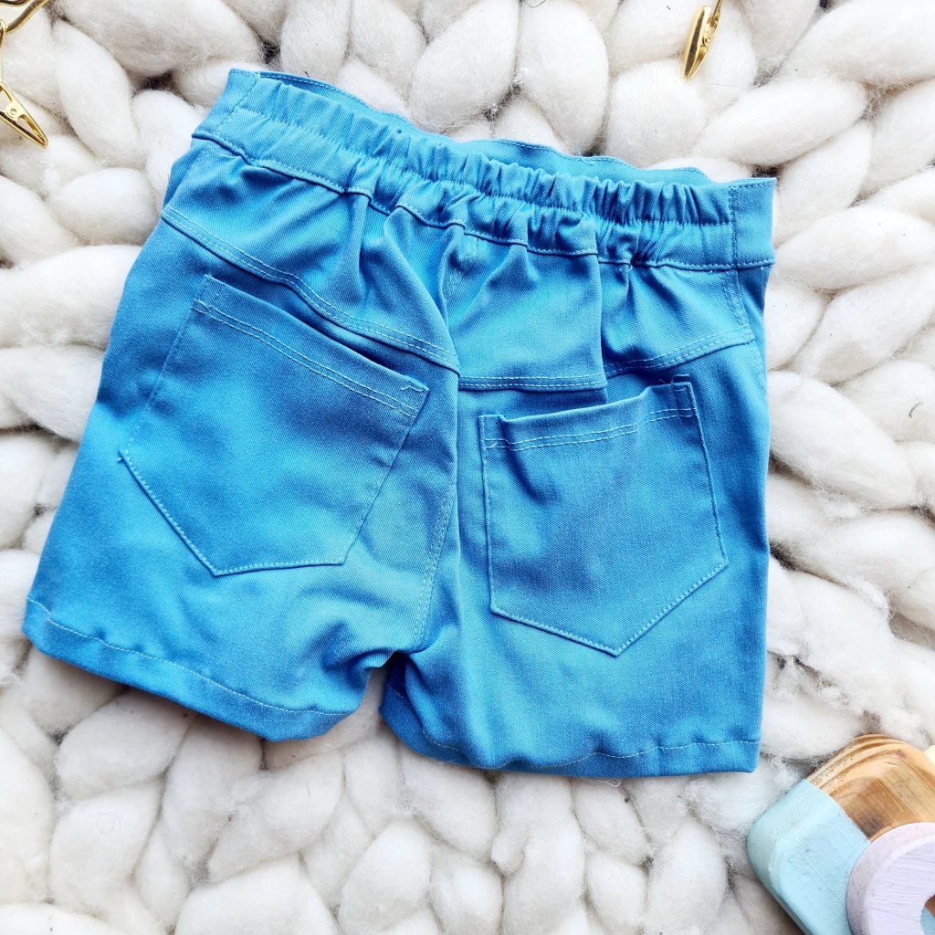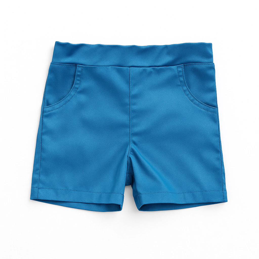 Bermuda de bengalinaelastizada celeste claro, con elastico en espalda