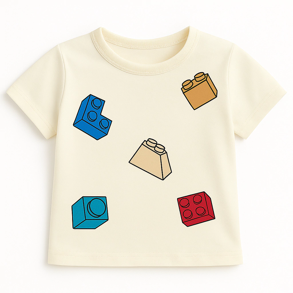 Remera de jersey color manteca con estampa termoadhesiva. Todas las remeras son diferentes y pueden o no tener hasta 7 leggos diferentes.