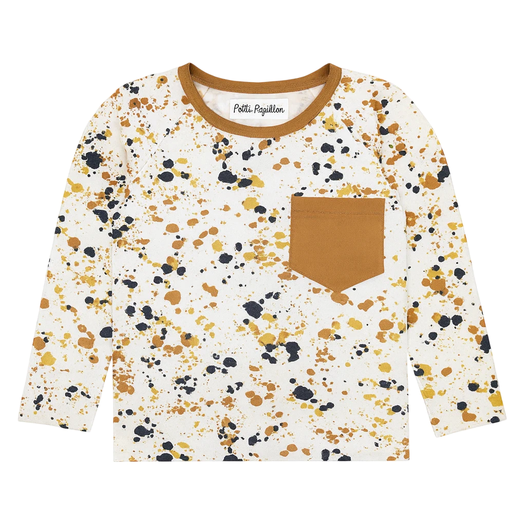 Remera de modal manchado con vivos y bolsillo color canela.
