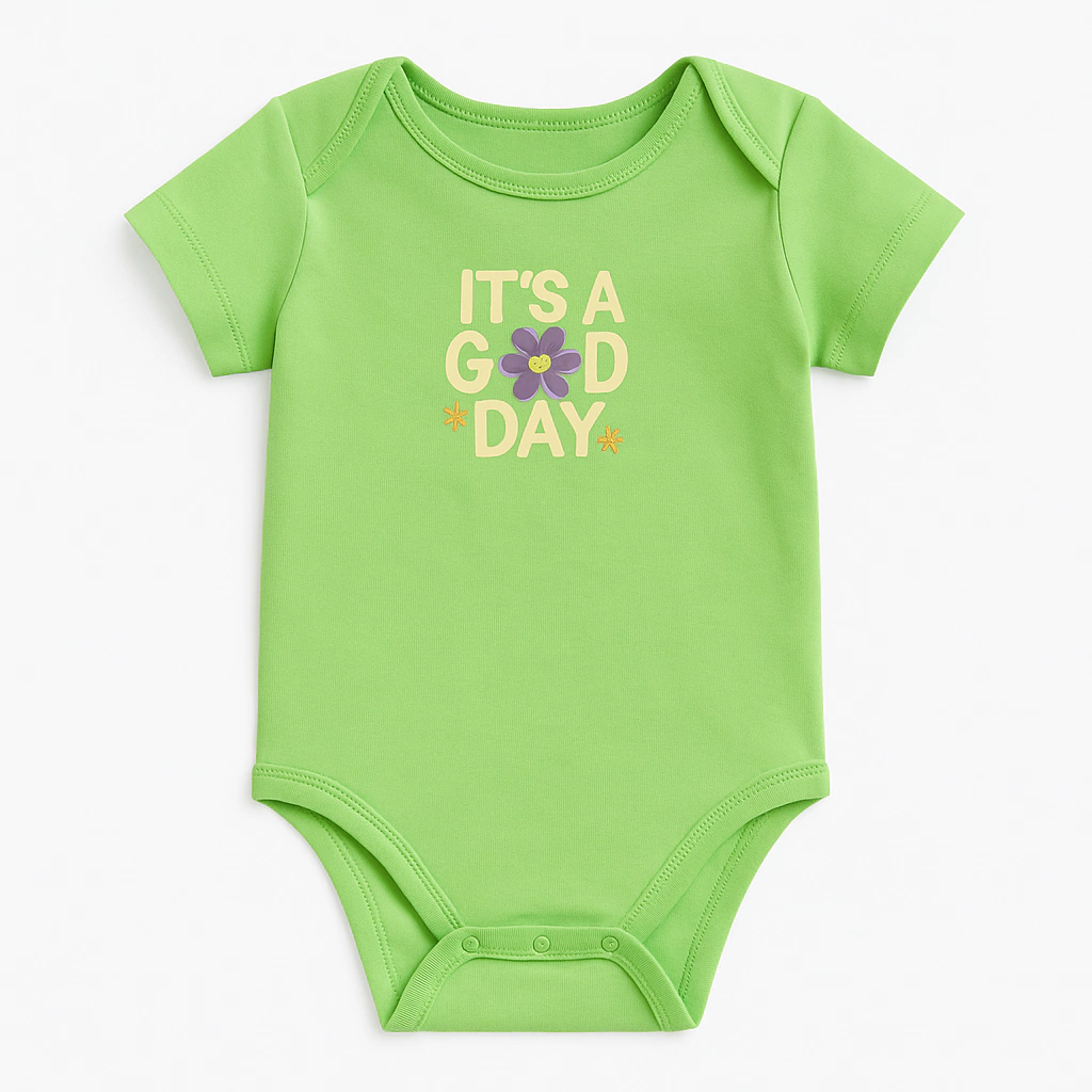 Body de jersey verde con estampa termoadhesiva.