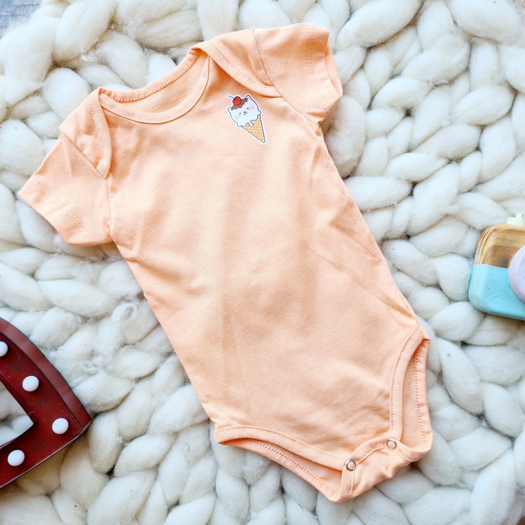 Body de jersey naranja con estampa termoadhesiva.